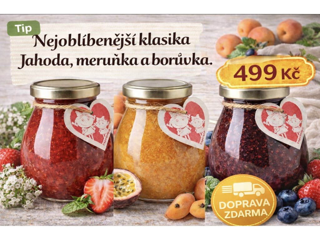 🎁 Balíček obsahuje 3 × 285 g marmelády.